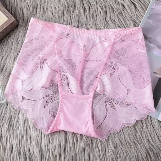 Women Elastic Transparent Sexy Lace Mesh Design Daily Panties Plus Size Breathable Thin Underwear Briefs